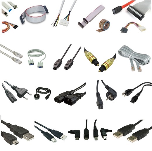Szabványos kábelek normál háztartási alkalmazásokhoz, audio/video kábelek, PC és hálózati kábelek, spirálkábelek, tápkábelek